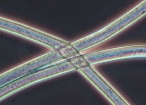 the opposite charge, or the fibers may stick mechanically. Recovering fibers from a crime victim can indicate what surfaces that victim was in contact with. For instance, int he Atlanta serial murder case, fibers from victims were matched to an unusual carpet in the suspect's house and car. This case was almost entirely built on fiber evidence. A major shortcoming of fibers is that